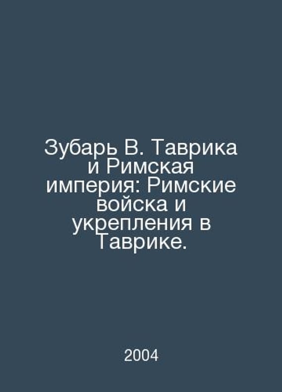 Zubar W. Taurika and the Roman Empire: Roman Troops and Fortifications in Taurika. In Russian /Zubar V. Tavrika i Rimskaya imperiya: Rimskie voyska i ukrepleniya v Tavrike. Kyiv Stilos 2004.. Contact us for details or to request photos of available books. SKUalba23cbdd825a84166.