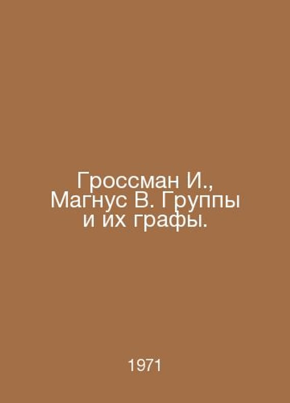 Grossman I., Magnus W. Groups and their Counts. In Russian /Grossman I., Magnus V. Gruppy i ikh grafy. Translation from English by G. Zuckerman. Edited and with an introductory article by V. Tarakanov. Series: Modern Mathematics. Popular series. Moscow: The World 1971.Contact us for details or to request photos of available books. Delivery of this book could take longer than normal due to additional handling time before shipping, and no rush delivery options are available. Please let us know if you have a specific date by which you need to receive your order.SKUalba27b6f1aca32299b
