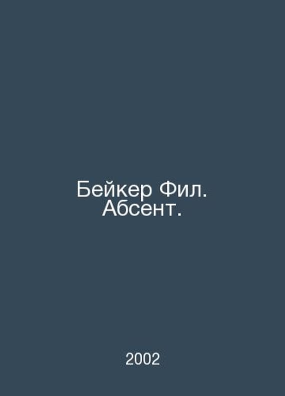 Baker Phil. Absent. In Russian /Beyker Fil. Absent. Culture of Everyday Life. Translation from English by Dubinka O. Edited by Trauberg N. M. The New Literary Review. 2002.. Contact us for details or to request photos of available books. SKUalba29bd8d344be7ffe.