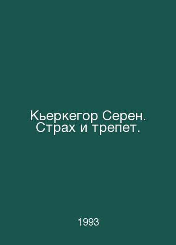 "Kierkegaard, Seren. Fear and awe. In Russian /Kerkegor, Seren. Strakh i trepet. Library of Philosophical Thought. M. TERRA-Book Club; Republic 1998.Contact us for details or to request photos of available books. Delivery of this book could take longer than normal due to additional handling time before shipping, and no rush delivery options are available. Please let us know if you have a specific date by which you need to receive your order.SKUalb80851f09aa2a6e25"