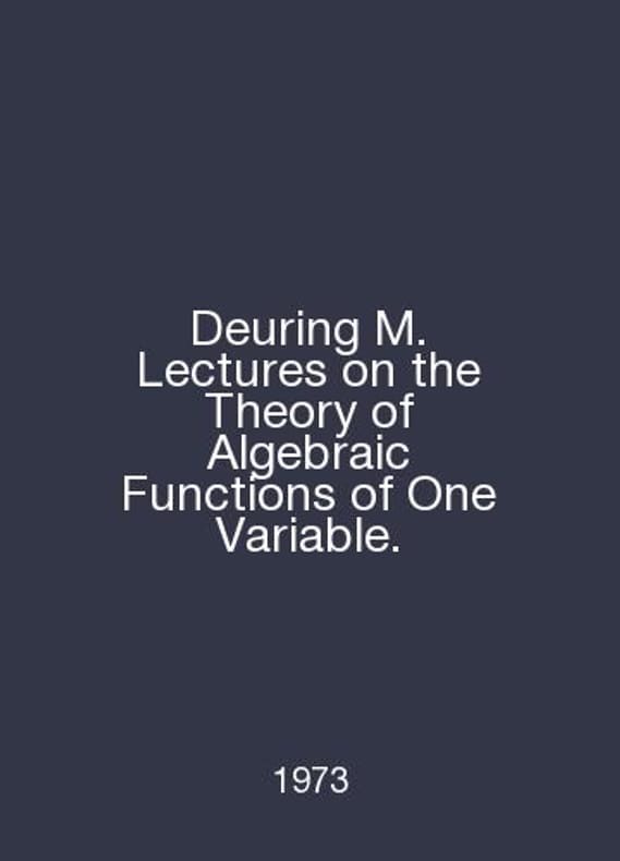 Deuring M. Lectures on the Theory of Algebraic Functions of One Variable. In English /Deuring M. Lectures on the Theory of Algebraic Functions of One Variable. Berlin O. Springer, 1973.Contact us for details or to request photos of available books. Delivery of this book could take longer than normal due to additional handling time before shipping, and no rush delivery options are available. Please let us know if you have a specific date by which you need to receive your order.SKUalba3ccfde15f145661
