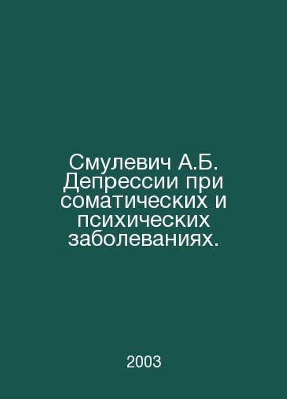 Smulevich A.B. Depression in somatic and mental diseases. In Russian /Smulevich A.B. Depressii pri somaticheskikh i psikhicheskikh zabolevaniyakh. Monograph. Moscow International Academy of Sciences 2003.. Contact us for details or to request photos of available books. SKUalba5efa51ce3df0646.