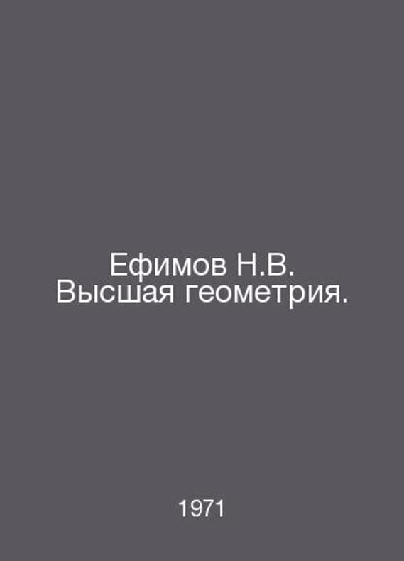 N.V. Efimov Higher Geometry. In Russian /Efimov N.V. Vysshaya geometriya. M. Science 1971.Contact us for details or to request photos of available books. Delivery of this book could take longer than normal due to additional handling time before shipping, and no rush delivery options are available. Please let us know if you have a specific date by which you need to receive your order.SKUalba6981310e2de9a26