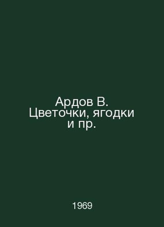 Ardov V. Flowers, berries, etc. In Russian /Ardov V. Tsvetochki, yagodki i pr. Humorous Stories and Scenes. Hood B. Ardov. M. Soviet Writer. 1969.Contact us for details or to request photos of available books. Delivery of this book could take longer than normal due to additional handling time before shipping, and no rush delivery options are available. Please let us know if you have a specific date by which you need to receive your order.SKUalba6c3624c8cb0acc5