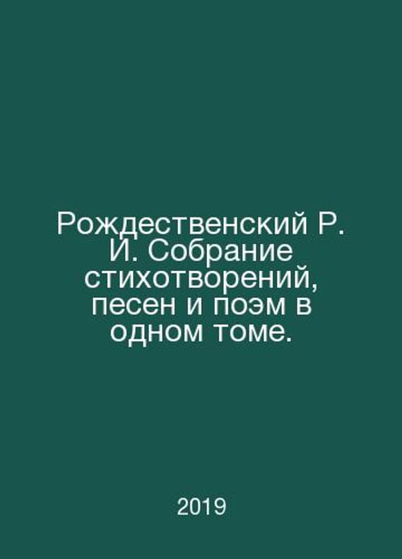Christmas R.I. A collection of poems, songs and poems in one volume. In Russian /Rozhdestvenskiy R. I. Sobranie stikhotvoreniy, pesen i poem v odnom tome. Complete collection of works. Moscow Exmo 2019.Contact us for details or to request photos of available books. Delivery of this book could take longer than normal due to additional handling time before shipping, and no rush delivery options are available. Please let us know if you have a specific date by which you need to receive your order.SKUalba77ff8c763c88586