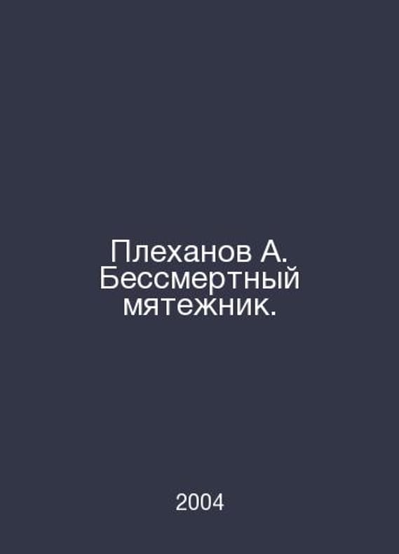 Plekhanov A. The Immortal Insurgent. In Russian /Plekhanov A. Bessmertnyy myatezhnik. M Exmo 2004. Contact us for details or to request photos of available books. Delivery of this book could take longer than normal due to additional handling time before shipping, and no rush delivery options are available. Please let us know if you have a specific date by which you need to receive your order.SKUalba86bd7278e13bc08