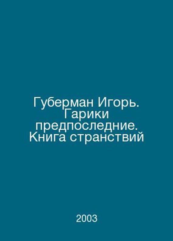 Guberman Igor. Gariki the penultimate. Book of Journeys In Russian /Guberman Igor. Gariki predposlednie. Kniga stranstviy Ekaterinburg U-Factor 2003.Contact us for details or to request photos of available books. Delivery of this book could take longer than normal due to additional handling time before shipping, and no rush delivery options are available. Please let us know if you have a specific date by which you need to receive your order.SKUalba8bde629306dd2be