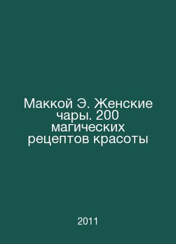 McCoy E. Womens Enchantment. 200 Magic Recipes for Beauty In Russian /Makkoy E. Zhenskie chary. 200 magicheskikh retseptov krasoty Sat.: All 2011.Contact us for details or to request photos of available books. Delivery of this book could take longer than normal due to additional handling time before shipping, and no rush delivery options are available. Please let us know if you have a specific date by which you need to receive your order.SKUalba8d241740cc26edd