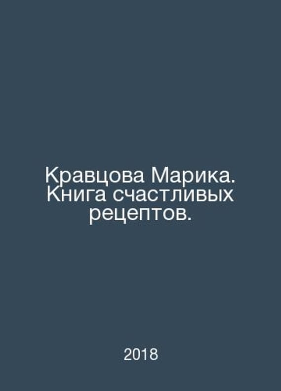 Marika Kravtsova. A book of happy recipes. In Russian /Kravtsova Marika. Kniga schastlivykh retseptov. Editor: Natalia Shcherbanenko KhlebSol 2018..Contact us for details or to request photos of available books. Delivery of this book could take longer than normal due to additional handling time before shipping, and no rush delivery options are available. Please let us know if you have a specific date by which you need to receive your order. SKUalba9f0b7a672e81dd2