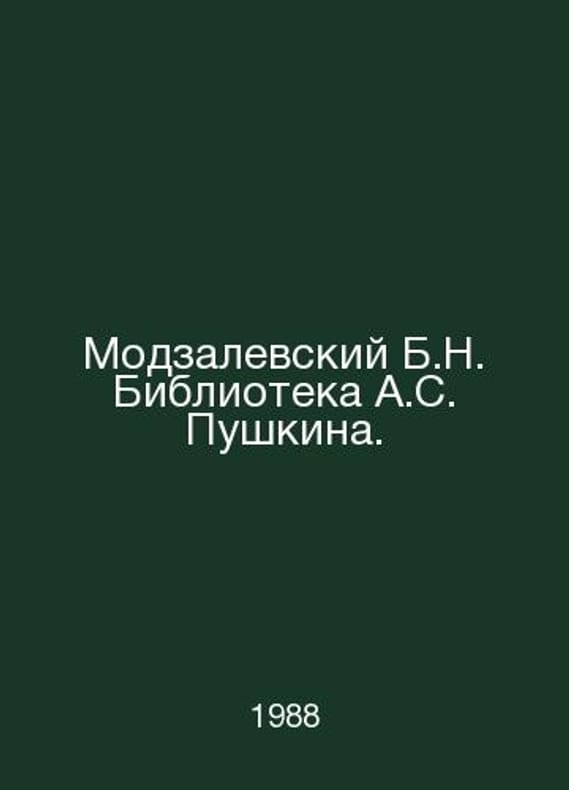 Modzalevsky B.N. Pushkins Library. In Russian /Modzalevskiy B.N. Biblioteka A.S. Pushkina. Reprinting of the 1910 edition and Supplement to the Reprinted Edition. M. Book. 1988.. Contact us for details or to request photos of available books. SKUalbaa9039be700fc8ff.