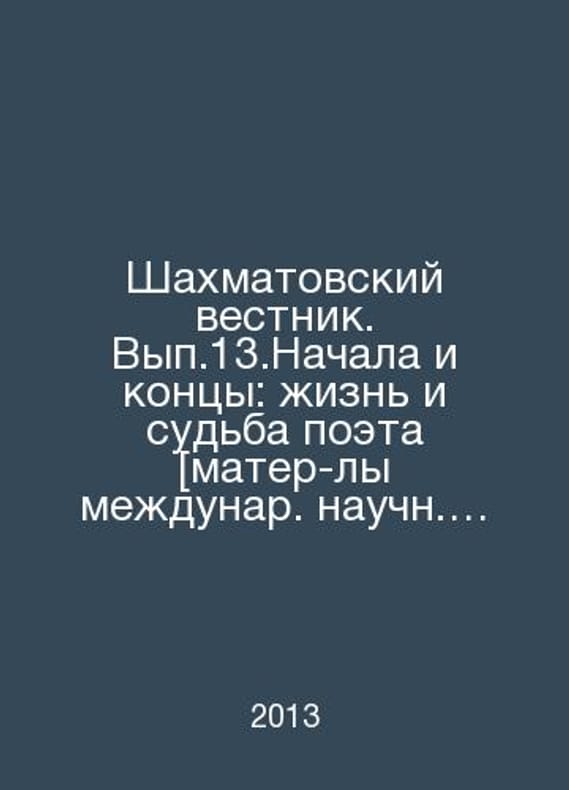 Chess Bulletin. Vol.13.Start and End: The Life and Fate of the Poet [the mother of the international scientific conference dedicated to the 90th anniversary of the death of A. Blok (September 12-14, 2011)] In Russian /Shakhmatovskiy vestnik. Vyp.13.Nachala i kontsy: zhizn i sudba poeta [mater-ly mezhdunar. nauchn. konf., posvyashchennoy 90-letiyu so dnya smerti A.Bloka(12-14 sentyabrya 2011)] Edited by I.S. Prikhodko Moscow IMLI RAS 2013. Contact us for details or to request photos of available books. Delivery of this book could take longer than normal due to additional handling time before shipping, and no rush delivery options are available. Please let us know if you have a specific date by which you need to receive your order. SKUalbab01f392f332059d