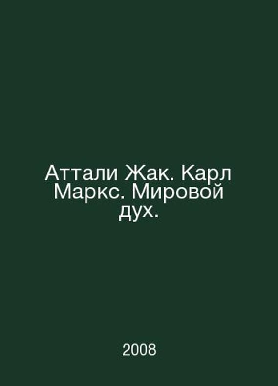 Attali Jacques. Karl Marx. The World Spirit. In Russian /Attali Zhak. Karl Marks. Mirovoy dukh. JZL M. Young Guard 2008.Contact us for details or to request photos of available books. Delivery of this book could take longer than normal due to additional handling time before shipping, and no rush delivery options are available. Please let us know if you have a specific date by which you need to receive your order.SKUalbab171a1f1adcf18f