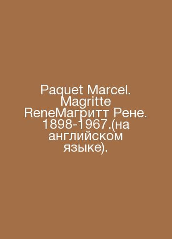 Paquet Marcel. Magritte Rene Magritte Rene. 1898-1967. In Russian /Paquet Marcel. Magritte ReneMagritt Rene. 1898-1967.(na angliyskom yazyke). Thought seen. London, Paris. 96s. Contact us for details or to request photos of available books. Delivery of this book could take longer than normal due to additional handling time before shipping, and no rush delivery options are available. Please let us know if you have a specific date by which you need to receive your order.SKUalbabb9d9443f9b09a8