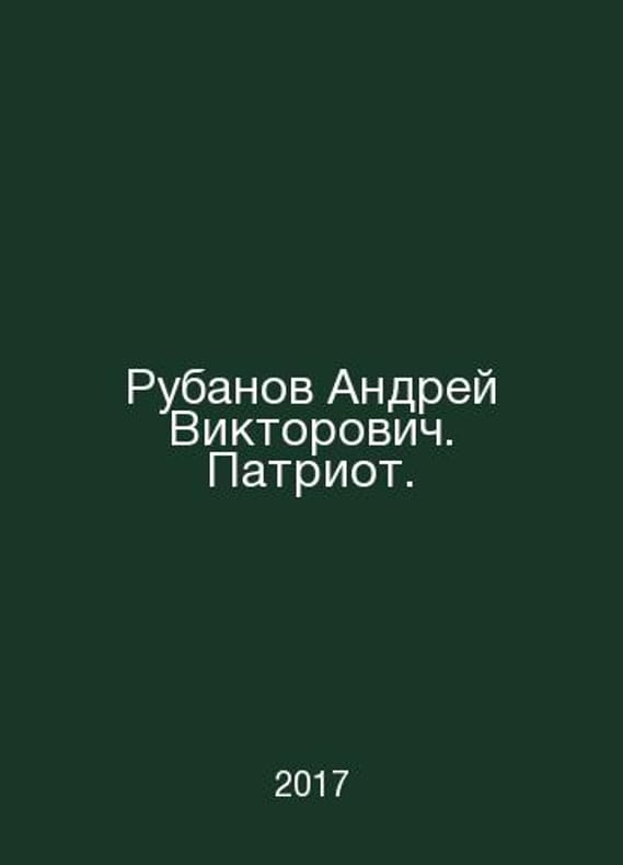 Rubanov Andrei Viktorovich. Patriot. In Russian /Rubanov Andrey Viktorovich. Patriot. Editing by Elena Shubina 2017. Contact us for details or to request photos of available books. Delivery of this book could take longer than normal due to additional handling time before shipping, and no rush delivery options are available. Please let us know if you have a specific date by which you need to receive your order.SKUalbac1908dbd9f5a50d
