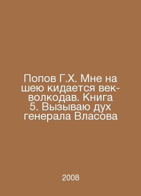 G.H. Popov is throwing a wolf-whistle at my neck. Book 5. I invoke the spirit of General Vlasov In Russian /Popov G.Kh. Mne na sheyu kidaetsya vek-volkodav. Kniga 5. Vyzyvayu dukh generala Vlasova M. International University in Moscow 2008.Contact us for details or to request photos of available books. Delivery of this book could take longer than normal due to additional handling time before shipping, and no rush delivery options are available. Please let us know if you have a specific date by which you need to receive your order.SKUalbac3123f8a0227e1e