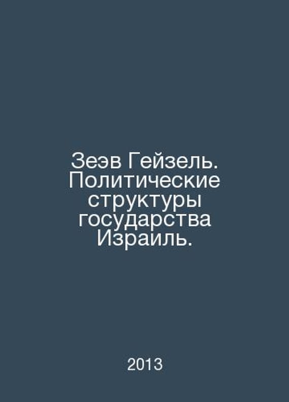 Zeev Geisel. The Political Structures of the State of Israel. In Russian /Zeev Geyzel. Politicheskie struktury gosudarstva Izrail. Institute for the Study of Israel and the Middle East. Moscow 2001.Contact us for details or to request photos of available books. Delivery of this book could take longer than normal due to additional handling time before shipping, and no rush delivery options are available. Please let us know if you have a specific date by which you need to receive your order.SKUalb48a9deb6aa2fbd72