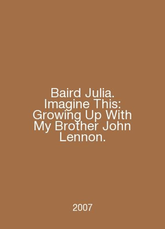 Baird Julia. Imagine This: Growing Up With My Brother John Lennon. In English /Baird Julia. Imagine This: Growing Up With My Brother John Lennon. Photographs. London Hodder Stoughton Ltd 2007.Contact us for details or to request photos of available books. Delivery of this book could take longer than normal due to additional handling time before shipping, and no rush delivery options are available. Please let us know if you have a specific date by which you need to receive your order.SKUalbacd5c8e06875c215