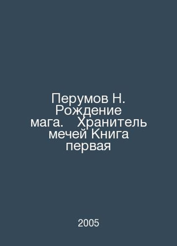 Perumov N. The Birth of a Magician. The Keeper of Swords Book One In Russian /Perumov N. Rozhdenie maga.†Khranitel mechey Kniga pervaya M. Exmo 2005. Contact us for details or to request photos of available books. Delivery of this book could take longer than normal due to additional handling time before shipping, and no rush delivery options are available. Please let us know if you have a specific date by which you need to receive your order.SKUalbad3891ea589c9396