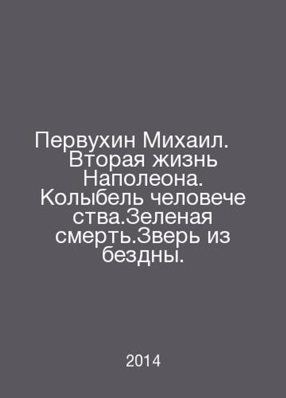 Pervukhin Mikhail. Napoleons Second Life. The Cradle of Man. The Green Death. The Beast from the Abyss. In Russian /Pervukhin Mikhail.† Vtoraya zhizn Napoleona. Kolybel chelovechestva.Zelenaya smert.Zver iz bezdny. Series: Retro Library of Adventure and Science Fiction. M. Prestige Book. 2014.Contact us for details or to request photos of available books. Delivery of this book could take longer than normal due to additional handling time before shipping, and no rush delivery options are available. Please let us know if you have a specific date by which you need to receive your order.SKUalbad4d34d229240b87