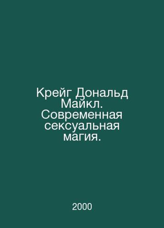 Craig Donald Michael: Modern Sex Magic. In Russian /Kreyg Donald Maykl. Sovremennaya seksualnaya magiya. Series: The Mystery World. Secrets of Erotic Spirituality. Contact us for details or to request photos of available books. Delivery of this book could take longer than normal due to additional handling time before shipping, and no rush delivery options are available. Please let us know if you have a specific date by which you need to receive your order. SKUalbad7a3beb691db43c