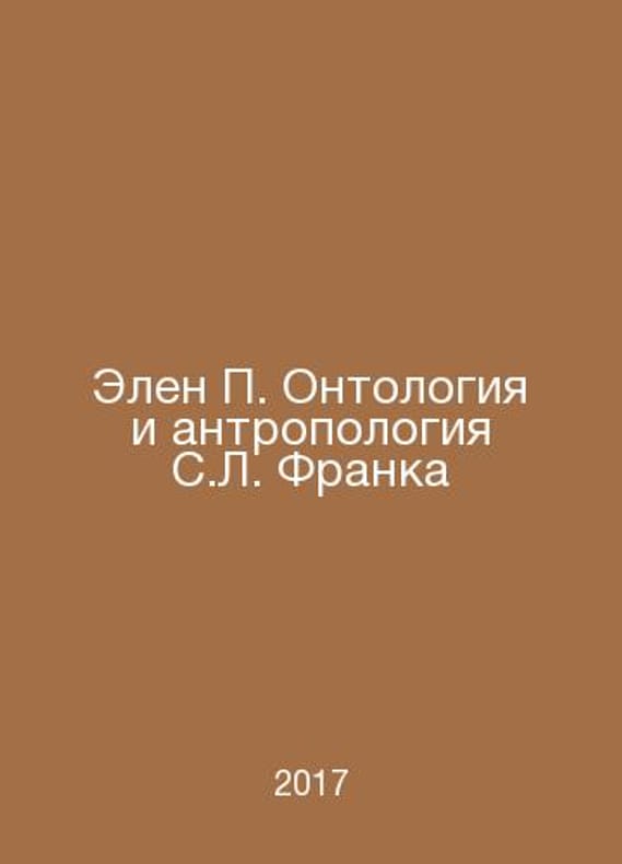 Helene Ontology and Anthropology of S.L. Frank In Russian /Elen Ontologiya i antropologiya S.L. Franka M. IFRAN 2017.Contact us for details or to request photos of available books. Delivery of this book could take longer than normal due to additional handling time before shipping, and no rush delivery options are available. Please let us know if you have a specific date by which you need to receive your order.SKUalbad9e7ed0dfcc949e