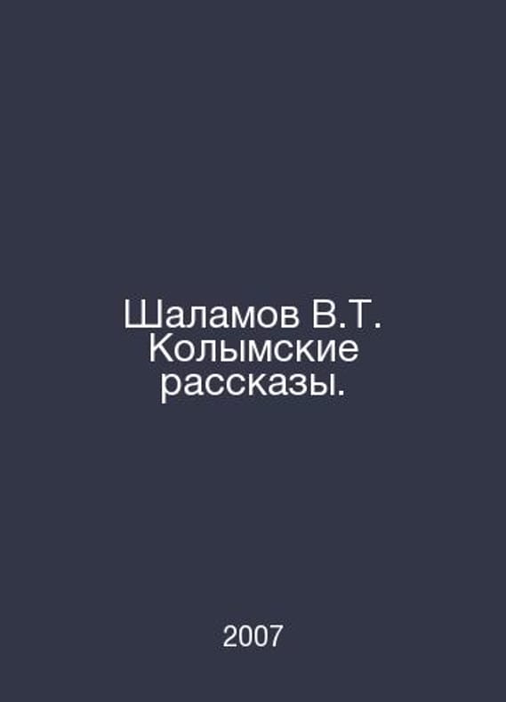 Shalamov V.T. Kolyma Stories. In Russian /Shalamov V.T. Kolymskie rasskazy. To the 100th anniversary of the writers birth. Moscow: Soviet writer. 2007 year.Contact us for details or to request photos of available books. Delivery of this book could take longer than normal due to additional handling time before shipping, and no rush delivery options are available. Please let us know if you have a specific date by which you need to receive your order.SKUalbae9fd6ad64bc1a01