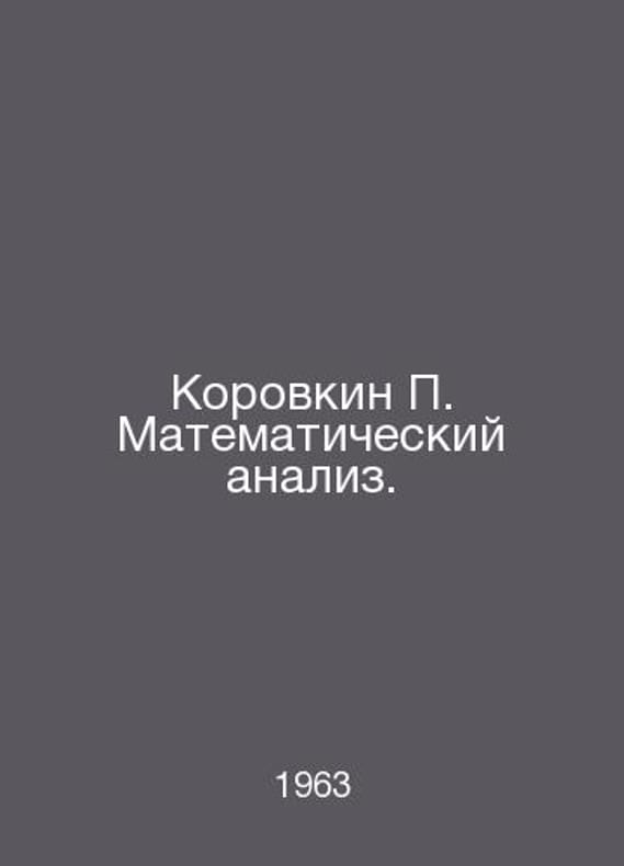 Korovkin Mathematical analysis. In Russian /Korovkin Matematicheskiy analiz. Part 1, Example M Enlightenment 1963.Contact us for details or to request photos of available books. Delivery of this book could take longer than normal due to additional handling time before shipping, and no rush delivery options are available. Please let us know if you have a specific date by which you need to receive your order.SKUalbb00f48250da1f73d