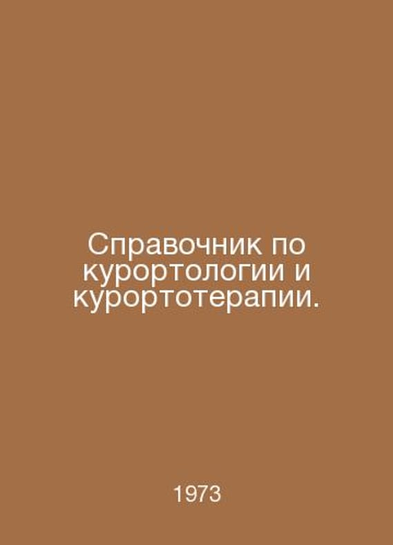 Guide to spa medicine and spa therapy. In Russian /Spravochnik po kurortologii i kurortoterapii. M Medicine 1973.Contact us for details or to request photos of available books. Delivery of this book could take longer than normal due to additional handling time before shipping, and no rush delivery options are available. Please let us know if you have a specific date by which you need to receive your order.SKUalbb065ce7293a34937