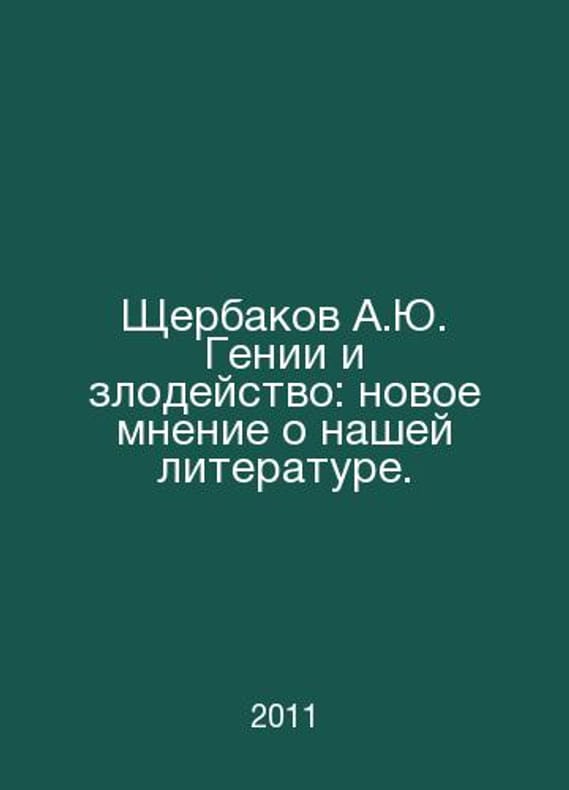 A.Yu. Shcherbakov Genius and Mischief: A New Opinion on Our Literature. In Russian /Shcherbakov A.Yu. Genii i zlodeystvo: novoe mnenie o nashey literature. Moscow Publishing House Tsentrpolygraph. 2011. Contact us for details or to request photos of available books. Delivery of this book could take longer than normal due to additional handling time before shipping, and no rush delivery options are available. Please let us know if you have a specific date by which you need to receive your order. SKUalbb075b96883f421d4