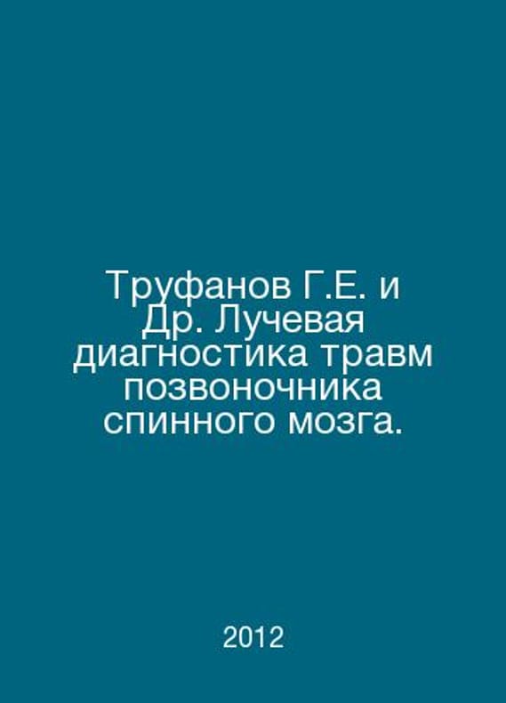 Trufanov G.E. and Dr. Radiodiagnosis of spinal cord injuries. In Russian /Trufanov G.E. i Dr. Luchevaya diagnostika travm pozvonochnika spinnogo mozga. A summary of radiation diagnosis. S.Pb.ELBI.-SPb 2012.Contact us for details or to request photos of available books. Delivery of this book could take longer than normal due to additional handling time before shipping, and no rush delivery options are available. Please let us know if you have a specific date by which you need to receive your order.SKUalbb0e914b8204f6685