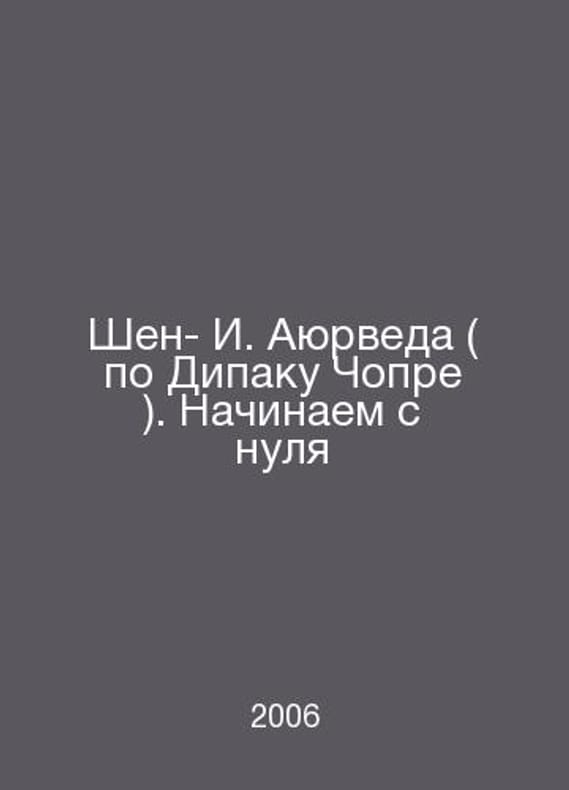 I-shen. Ayurveda by Deepak Chopra. Starting from scratch In Russian /I-shen. Ayurveda po Dipaku Chopre. Nachinaem s nulya St. Petersburg Vector 2006. We have thousands of titles and often several copies of each title may be available. Please feel free to contact us for a detailed description of the copies available. SKUalbfa025272cab203bb.