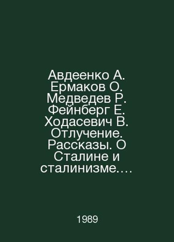Avdeenko A. Ermakov O. Medvedev R. Feinberg E. Khodasevich V. Excommunication. Stories. About Stalin and Stalinism. Werner Heisenberg: the tragedy of the scientist. Four stars rose to the firmament. In Russian /Avdeenko A. Ermakov O. Medvedev R. Feynberg E. Khodasevich V. Otluchenie. Rasskazy. O Staline i stalinizme. Verner Geyzenberg: tragediya uchenogo. Chetyre zvezdochki vzoshli na nebosvod. M 2e 1989.Contact us for details or to request photos of available books. Delivery of this book could take longer than normal due to additional handling time before shipping, and no rush delivery options are available. Please let us know if you have a specific date by which you need to receive your order.SKUalbb1949ac32d00a55b