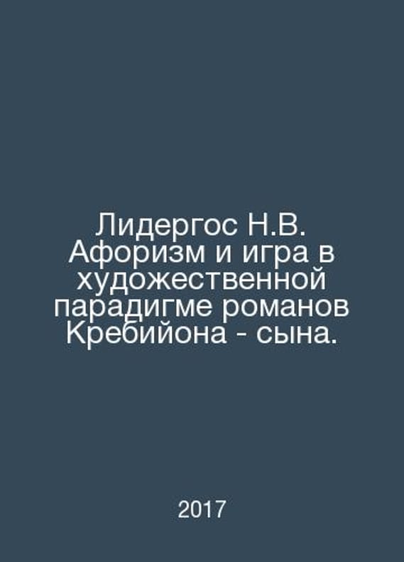 Leadergos N.V. The aphorism and play of the artistic paradigm of Crebillon-son novels. In Russian /Lidergos N.V. Aforizm i igra v khudozhestvennoy paradigme romanov Krebiyona - syna. Grodno YurSaPrint 2017 Monograph. Contact us for details or to request photos of available books. Delivery of this book could take longer than normal due to additional handling time before shipping, and no rush delivery options are available. Please let us know if you have a specific date by which you need to receive your order. SKUalbb1f6f9e6809e031f