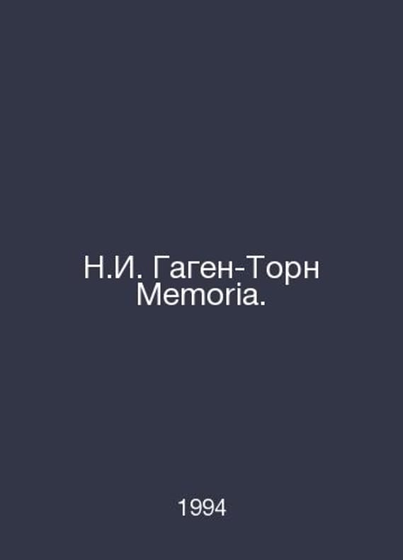 N.I. Gagen-Thorne Memoria. In Russian /N.I. Gagen-Torn Memoria. The Illustrated Edition of M. The Return 1994.Contact us for details or to request photos of available books. Delivery of this book could take longer than normal due to additional handling time before shipping, and no rush delivery options are available. Please let us know if you have a specific date by which you need to receive your order.SKUalbb2ed2976eb7a9d96