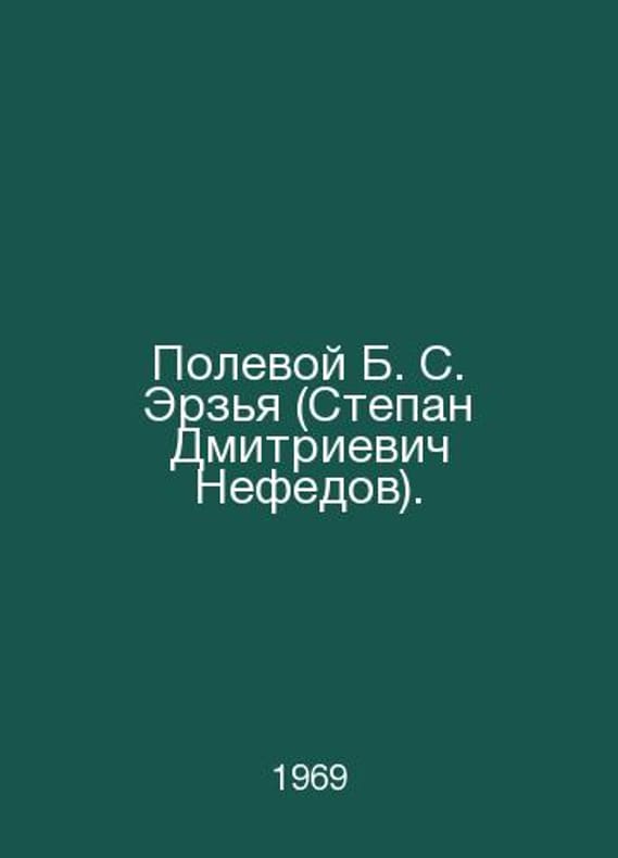 B. S. Erzya (Stepan Dmitrievich Nefedov). In Russian /Polevoy B. S. Erzya (Stepan Dmitrievich Nefedov). Saransk Mordovskaya Book Publishing House 1969.Contact us for details or to request photos of available books. Delivery of this book could take longer than normal due to additional handling time before shipping, and no rush delivery options are available. Please let us know if you have a specific date by which you need to receive your order.SKUalbb32361bccd76665a