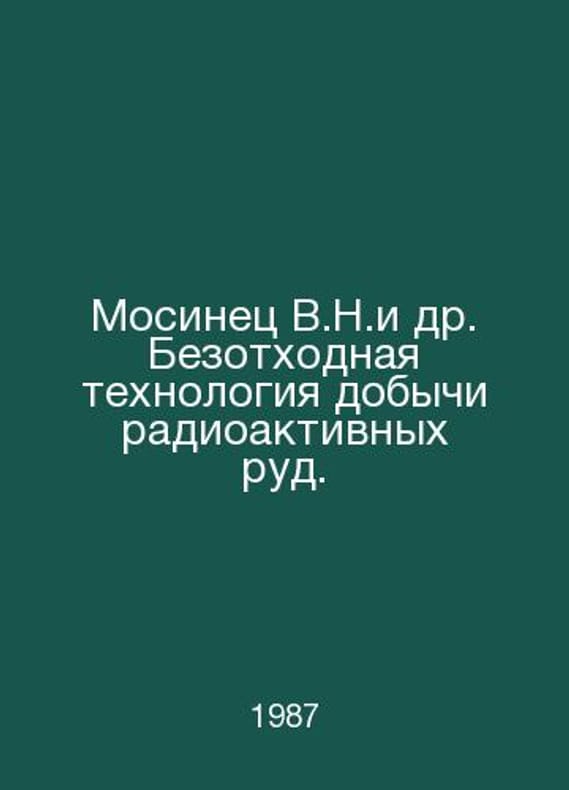 Mosinets V.N. et al. Waste-free technology for extracting radioactive ores. In Russian /Mosinets V.N.i dr. Bezotkhodnaya tekhnologiya dobychi radioaktivnykh rud. Moscow Energoatomizdat 1987. Contact us for details or to request photos of available books. Delivery of this book could take longer than normal due to additional handling time before shipping, and no rush delivery options are available. Please let us know if you have a specific date by which you need to receive your order.SKUalbb365e9fbf01ff3e8