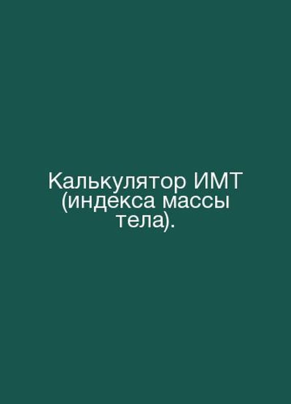 BMI (body mass index) calculator. In Russian /Kalkulyator IMT (indeksa massy tela). M Geotar Media 2022.Contact us for details or to request photos of available books. Delivery of this book could take longer than normal due to additional handling time before shipping, and no rush delivery options are available. Please let us know if you have a specific date by which you need to receive your order. SKUalbb3ce47a6c05eb70c