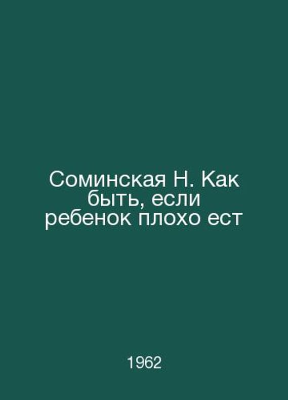 Sominskaya N. What if a child does not eat well? In Russian /Sominskaya N. Kak byt, esli rebenok plokho est M 1962.Contact us for details or to request photos of available books. Delivery of this book could take longer than normal due to additional handling time before shipping, and no rush delivery options are available. Please let us know if you have a specific date by which you need to receive your order.SKUalbb4e300ebd36ea1ee