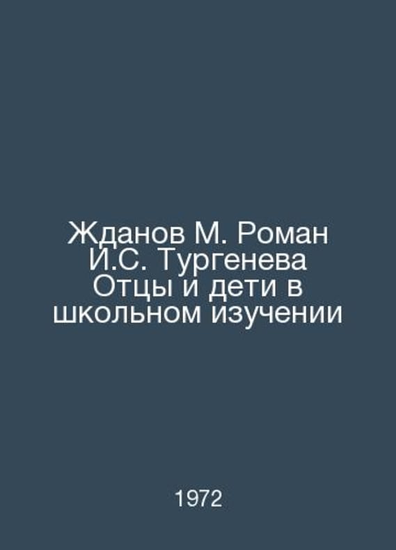 Zhdanov M. Roman I. Turgenev Fathers and Children in School Studies In Russian /Zhdanov M. Roman I.S. Turgeneva Ottsy i deti v shkolnom izuchenii LEnlightenment 1972. Contact us for details or to request photos of available books. Delivery of this book could take longer than normal due to additional handling time before shipping, and no rush delivery options are available. Please let us know if you have a specific date by which you need to receive your order. SKUalbb4eb62be9fac9e53