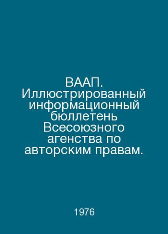 WAAR Illustrated newsletter of the All-Union Copyright Agency. In Russian /VAA Illyustrirovannyy informatsionnyy byulleten Vsesoyuznogo agenstva po avtorskim pravam. 3 (10). 1976 M. WAAR 1976.. Contact us for details or to request photos of available books. SKUalbb56d343700aab19e.
