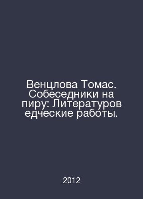 Wenclova Thomas. Interlocutors at the banquet: Literary works. In Russian /Ventslova Tomas. Sobesedniki na piru: Literaturovedcheskie raboty. Series: M. Science Library The New Literary Review 2012. Contact us for details or to request photos of available books. Delivery of this book could take longer than normal due to additional handling time before shipping, and no rush delivery options are available. Please let us know if you have a specific date by which you need to receive your order. SKUalbb58fa8e3624554b4