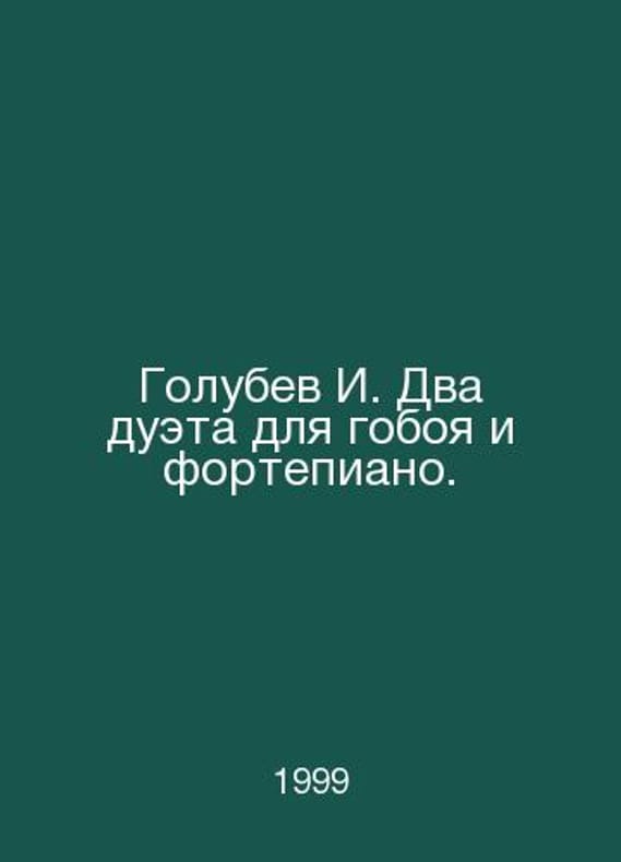 Golubev I. Two duets for oboe and piano. In Russian /Golubev I. Dva dueta dlya goboya i fortepiano. M. Compositor. 1999 year. Contact us for details or to request photos of available books. Delivery of this book could take longer than normal due to additional handling time before shipping, and no rush delivery options are available. Please let us know if you have a specific date by which you need to receive your order.SKUalbb638497754a06ace