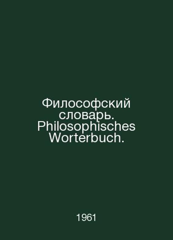 Philosophical Dictionary. Philosophisches Worterbuch. In Russian /Filosofskiy slovar. Philosophisches Worterbuch. Under the editorship of G. Schmidt. General editorial and introductory article by M. M. Rosenthal. Translated from German by M. I. L. 1961.Contact us for details or to request photos of available books. Delivery of this book could take longer than normal due to additional handling time before shipping, and no rush delivery options are available. Please let us know if you have a specific date by which you need to receive your order.SKUalbb6f2f978dce41b4d