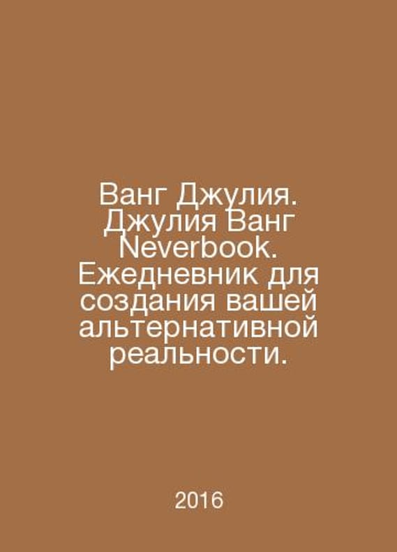 Wang Julia. Julia Wang Neverbook. A diary to create your alternative reality. In Russian /Vang Dzhuliya. Dzhuliya Vang Neverbook. Ezhednevnik dlya sozdaniya vashey alternativnoy realnosti. Series: Julia Wangs Book of M.A.T. 2016. Contact us for details or to request photos of available books. Delivery of this book could take longer than normal due to additional handling time before shipping, and no rush delivery options are available. Please let us know if you have a specific date by which you need to receive your order. SKUalbb74e4c46bdfc9c42