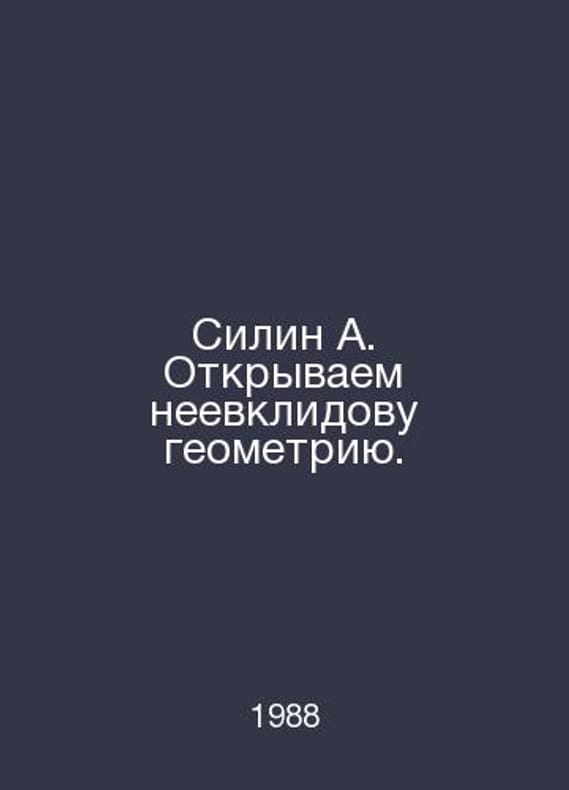 Silin A. Discover non-Euclidean geometry. In Russian /Silin A. Otkryvaem neevklidovu geometriyu. World of Knowledge 1988.Contact us for details or to request photos of available books. Delivery of this book could take longer than normal due to additional handling time before shipping, and no rush delivery options are available. Please let us know if you have a specific date by which you need to receive your order.SKUalbb7f54c7a18e7ee93