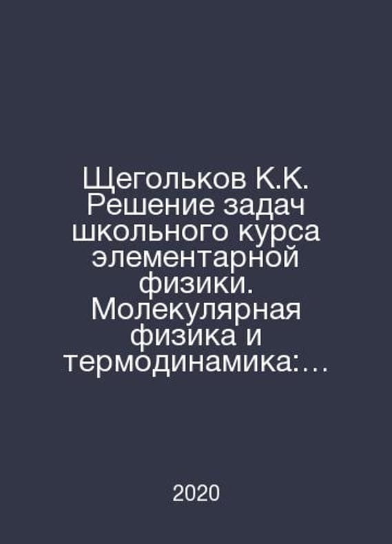 Shchegolkov K.K. Solving the problems of a school course of elementary physics. Molecular physics and thermodynamics: A textbook for high school students in general education institutions In Russian /Shchegolkov K.K. Reshenie zadach shkolnogo kursa elementarnoy fiziki. Molekulyarnaya fizika i termodinamika: Uchebnoe posobie dlya uchashchikhsya starshikh klassov obshcheobrazovatelnykh uchebnykh zavedeniy Prometheus Moscow 2020.Contact us for details or to request photos of available books. Delivery of this book could take longer than normal due to additional handling time before shipping, and no rush delivery options are available. Please let us know if you have a specific date by which you need to receive your order.SKUalbba253a27c46a9765