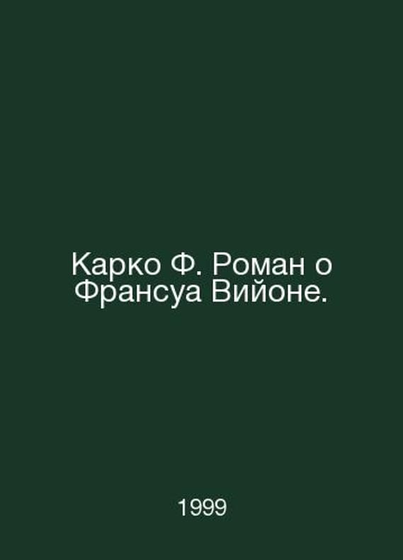Carco F. Roman on Francois Villon. In Russian /Karko F. Roman o Fransua Viyone. Translated from French. S.Pb.1999.Contact us for details or to request photos of available books. Delivery of this book could take longer than normal due to additional handling time before shipping, and no rush delivery options are available. Please let us know if you have a specific date by which you need to receive your order.SKUalbba3d3e77781b0756