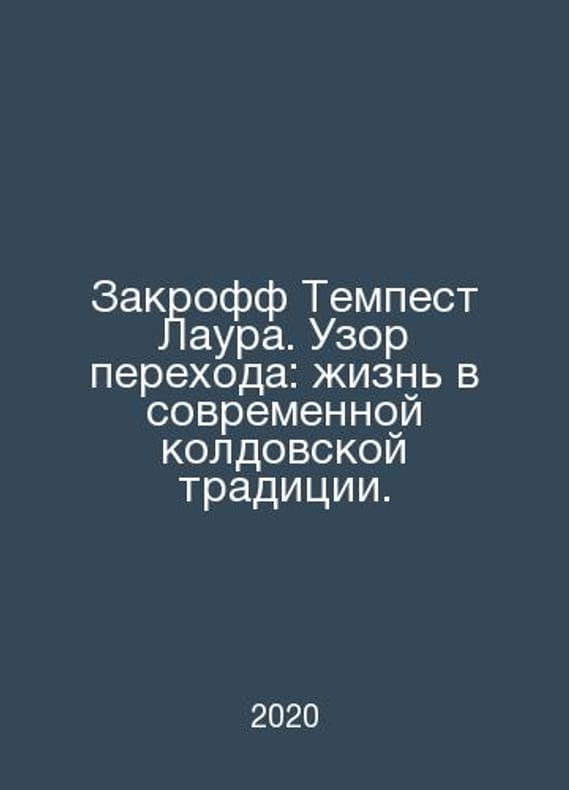 Zakroff Tempest Laura. The pattern of transition: life in the modern witchcraft tradition. In Russian /Zakroff Tempest Laura. Uzor perekhoda: zhizn v sovremennoy koldovskoy traditsii. Sat.: All 2020. Contact us for details or to request photos of available books. Delivery of this book could take longer than normal due to additional handling time before shipping, and no rush delivery options are available. Please let us know if you have a specific date by which you need to receive your order. SKUalbbab290de275e9673