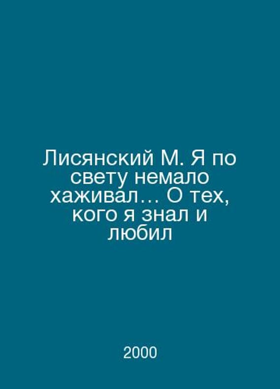 Lisyansky M. I have spent a lot of time in the world caring about those I knew and loved. In Russian /Lisyanskiy M. Ya po svetu nemalo khazhival O tekh, kogo ya znal i lyubil M. Tverskaya, 13 2000.Contact us for details or to request photos of available books. Delivery of this book could take longer than normal due to additional handling time before shipping, and no rush delivery options are available. Please let us know if you have a specific date by which you need to receive your order.SKUalbbacdbcabcac40882