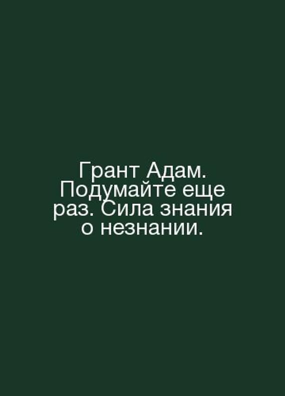 Grant Adam. Think again. The power of knowledge about ignorance. In Russian /Grant Adam. Podumayte eshche raz. Sila znaniya o neznanii. Series: Flexible Thinking. Translated from Ekaterina Petrova. M. Mann, Ivanov and Ferber 2022. 272 Contact us for details or to request photos of available books. Delivery of this book could take longer than normal due to additional handling time before shipping, and no rush delivery options are available. Please let us know if you have a specific date by which you need to receive your order.SKUalbbaed585f556109e7